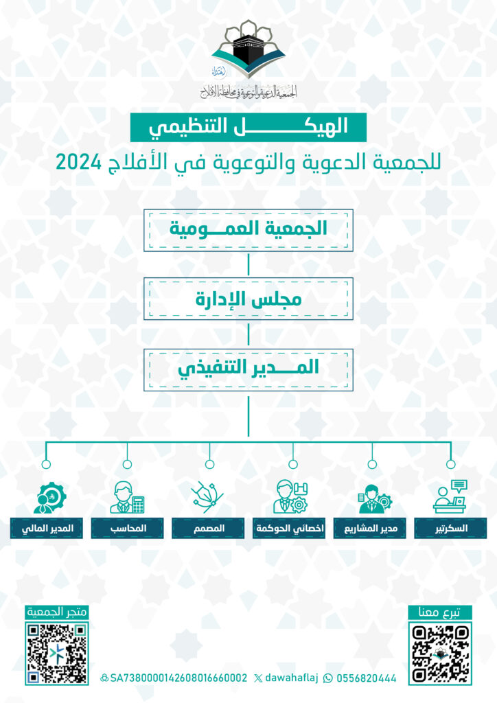 جمعية أهلية مرخصة من المركز الوطني لتنمية القطاع غير الربحي بترخيص رقم(5511) وإشراف فني من وزارة الشؤون الإسلامية والدعوة الإرشاد تأسست بتاريخ 1445/05/01 هـ، تعني بمجال الدعوة إلى الله والتوعية بمحافظة الأفلاج ببرامج نوعية مؤثرة وأساليب تقنية متطورة ومتنوعة، من خلال فريق عمل إبداعي في بيئة جاذبة، لربط الناس بالعقيدة الصحيحة وفق منهج السلف الصالح طاعة لله ورسوله ثم لولاة الأمر، كما تهتم برعاية المناشط التي تعزز الأمن الفكري للشباب وتحميهم من الفكر المنحرف، وتوعية الجاليات المسلمة بنشر تعاليم الإسلام السمحة ودعوة غير المسلمين.